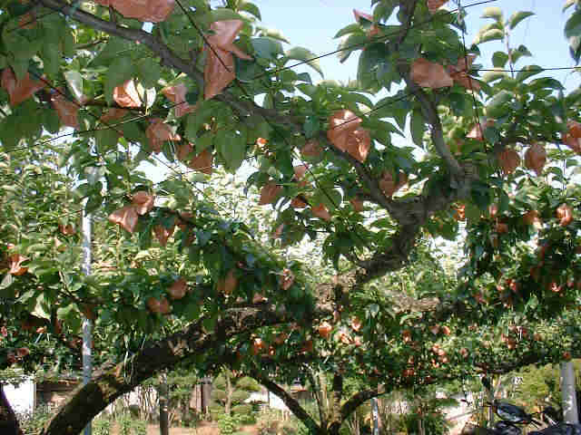 南水は収穫直前までひとつひとつ赤い袋の中で育てます。